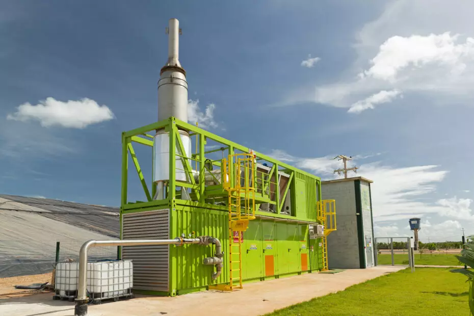 – A queima do gás é utilizada para a geração de energia elétrica no moto-gerador, enquanto reduz o impacto da liberação desses gases produzidos na atmosfera.